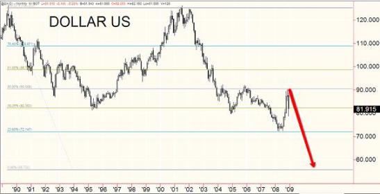 - Le prochain objectif du dollar est 55,50, soit une baisse de 32% à partir du niveau actuel. Sur un horizon de trois ans.