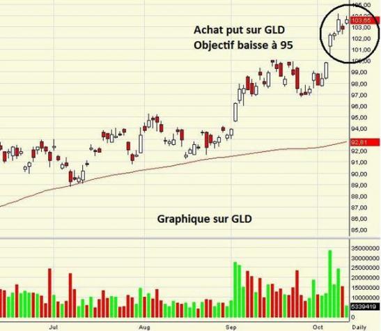 Et puis l'or, en hausse de 11 semaines sur les 13 dernières, va-t-il rester à ce niveau ? J'ai posé la question à certains traders sur le NYMEX (place de marché où se traite le contrat à terme sur l'or) et certains m'ont avoué avoir liquidé une partie de leurs positions sur les contrats or vers les 1050 $ et préfèrent s'intéresser maintenant au pétrole qui devrait monter dans les prochaines semaines. Comme l'indique le fameux dicton sur les places de marché « follow the money trail », j'ai suivi mes amis du NYMEX en initiant une position vendeuse sur l'or (précisément sur l'ETF GLD), tandis que je suis déjà en position acheteuse sur le pétrole depuis plus de 15 jours.