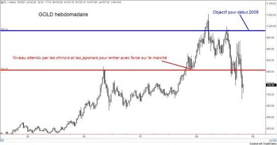Le cours de l'or a chuté de ses plus hauts historiques, 1050 USD l'once, atteints en Mars 2008, à 680 USD, point bas de ce vendredi dernier pour rapidement rebondir et clôturer à 730 USD. Que signifie cette chute de 370 USD, soit près de 35% ? Le roi des métaux a-t-il perdu son caractère de valeur refuge ? Les investisseurs « OR » sont déçus devant cette chute violente de l'or alors que la crise financière d'aujourd'hui devrait lui être profitable. Déçus car ils s'attendent à un comportement logique, par rapport aux principes d'économie académique. Mais les marchés ont depuis longtemps cassé les limites de ces principes. Désormais, ils sont livrés non pas à eux-mêmes, mais au besoin à court terme d'une poignée de gérants de portefeuille, qui en un seul clic, et sans avoir à passer par un conseil d'administration, passent des ordres d'un poids astronomique, donnant la priorité absolue aux profits qu'ils peuvent réaliser le plus vite possible. Dès lors, est-il néanmoins possible d'anticiper l'évolution probable du métal jaune sur les 3 prochaines années ? En étudiant les véritables raisons de cette chute vertigineuse et le besoin futur et inéluctable des grands détenteurs de dollars américains (chinois, japonais, arabes) on peut répondre «oui ».
