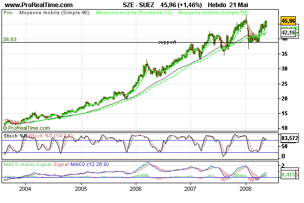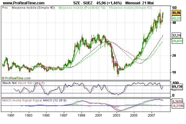 Ces trois périodes sont représentées ici pour l'action Suez.
