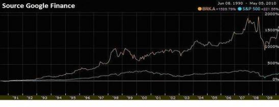 (BFM Bourse) - Trouver les moyens d'acheter une action, ou même une entreprise, pour moins que sa valeur intrinsèque, voici la méthode d'investissement modifiée et améliorée par de l'investisseur légendaire Warren Buffett, disciple de Benjamin Graham, le père de l'analyse des valeurs mobilières. Malgré toutes les nouvelles théories d'investissement comme les modèles quantitatifs ou le HFT (High Frequency Trading), Warren Buffett reste le maitre incontesté de la performance pour sa régularité : 28% par an depuis plus de 40 ans. Le « Sage d'Omaha » (ville du Nebraska aux Etats-Unis) est également le fondateur du fonds d'investissement Berkshire Hathaway. Des quatre coins du monde, des milliers d'investisseurs paieraient des fortunes pour connaitre les secrets : en moins d'un demi-siècle, il est devenu l'un des 3 hommes les plus riches de la planète (fortune estimée à 47 Milliards de dollars US) uniquement grâce à ses choix d'investissement. A titre d'exemple comme le montre le graphique ci-dessous, en investissant 10000 euros en juin 1990 sur l'action Berkshire Hathaway vous auriez aujourd'hui 16 fois votre capital soit 160000 euros. Qui n'a jamais rêvé de connaître les méthodes qu'utilise l'investisseur le plus riche du monde, l'américain Warren Buffett ? Les 22 et 23 mai 2010, vous apprendrez les techniques qui ont permis à Warren Buffett d'atteindre une performance de 28% par an depuis 40 ans, tous les renseignements sur www.institutdelabourse.fr.