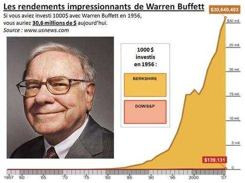 Dans cet article, je vous livre un des principes d'investissement qui font de Warren Buffett l'homme hors du commun qui a défié toutes les crises boursières avec une insolente performance ! D'ailleurs si vous aviez investi 1000 $ avec Warren en 1956, vous auriez plus de 30 millions de dollars aujourd'hui comme le montre l'explicatif ci-dessous.