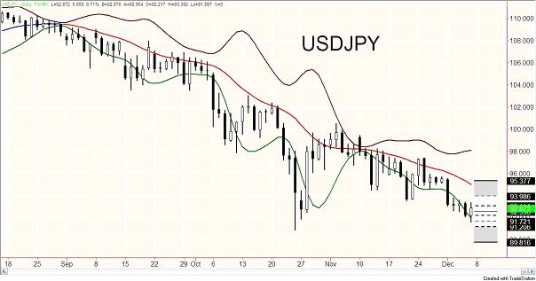 Un Japonais de Genève m'a dit qu'on suivant mon indicateur sur le yen il a réalisé une performance exceptionnelle pour son entreprise. Cela fait toujours plaisir …Effectivement sur le dollar/yen les indicateurs Belkhayate marchent à la perfection. Je devrais les louer à la banque centrale du Japon ;-) . Pour cette semaine, il est maintenant facile pour vous de savoir quelle attitude adopter. La tendance est encore baissière et il serait aventureux de tenter d'acheter. Il faut juste observer tout en gardant votre position vendeur.
