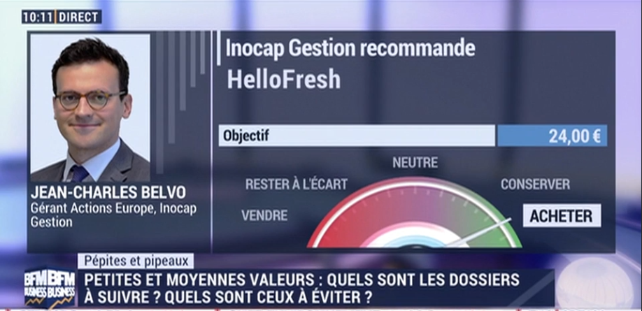 (BFM Bourse) - Jean-Charles Belvo, Gérant actions Europe chez Inocap Gestion, recommande ce mercredi HelloFresh, le spécialiste de la livraison de panier-recettes à domicile.