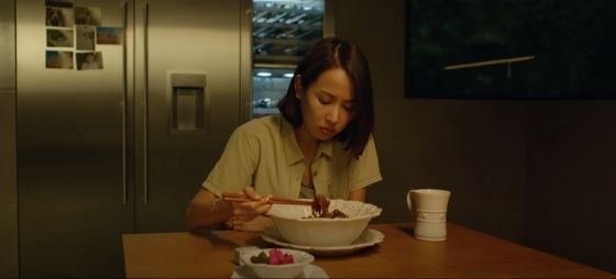 Vers la moitié du film, alors qu'elle revient d'un week-end de camping, Mme Park appelle sa gouvernante, Mme Kim, et lui demande de préparer un bol de "chapaguri" pour son jeune fils, un mélange de chapaghetti (des nouilles instantanées aux haricots noirs) et de neoguri (nouilles coréennes épicées). Détail important, Mme Kim prépare le plat en y ajoutant des cubes de surlonge de bœuf.