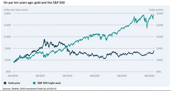 Depuis lors, comme le montre DWS dans son "graphique de la semaine", les actions américaines ont bondi de 220 % -ce, hors dividendes- pour atteindre près de 3 000 points d'indice. L'or, en revanche, n'a augmenté que de 50%.