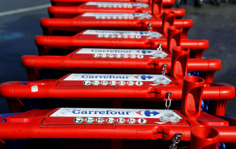 * CARREFOUR s'est montré prudent pour 2018 et s'est abstenu de toute indication sur ses perspectives de résultats, après un premier trimestre plombé par une baisse des ventes dans les hypermarchés en France et par la déflation au Brésil. Les ventes du distributeur ont reculé de 2,4% à 20,78 milliards d'euros en données publiées, un chiffre inférieur aux 20,87 milliards du consensus Reuters/Inquiry Financial.