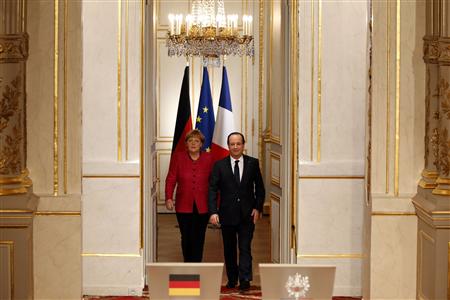 PARIS (Reuters) - La France et l'Allemagne sont d'accord pour doter l'Eurogroupe d'un président à temps plein, une des pistes pour accroître la coordination des politiques économiques dans la zone euro, a déclaré jeudi François Hollande.