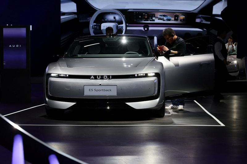 En Chine, où les livraisons d’Audi ont reculé de 5% en 2025, la marque tente de reconquérir ses clients avec une "marque sœur" – sans les célèbres quatre anneaux du constructeur allemand – en lançant l’E5 Sportback entièrement électrique, développée avec le constructeur chinois d’État SAIC.