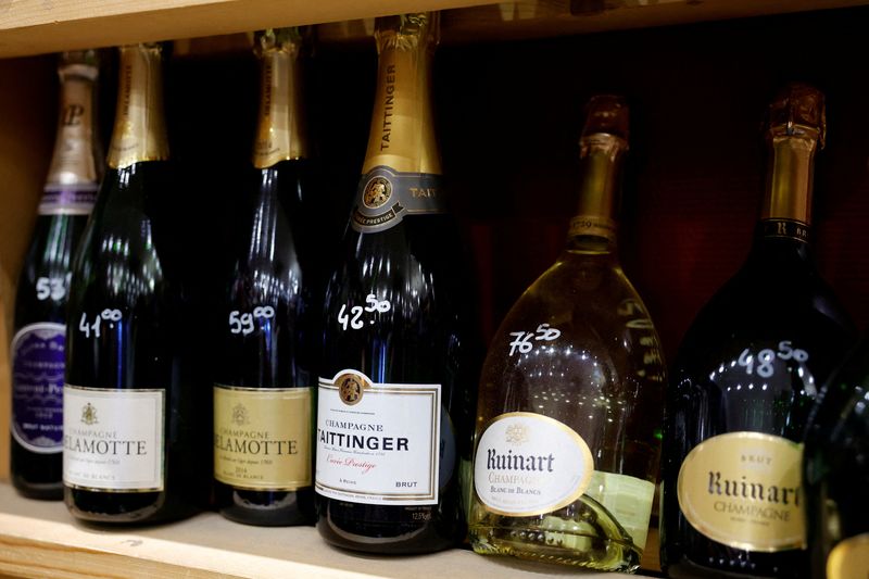 PARIS (Reuters) - Les exportations françaises de vins et de spiritueux ont chuté l'année dernière par rapport à leur pic post-COVID, alors que l'inflation a érodé la demande et que les distributeurs sur le marché américain ont liquidé leurs stocks, montre mardi le bilan de la Fédération des exportateurs de vins et spiritueux de France (FEVS).