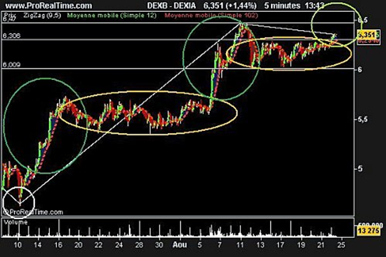 (Trading) Comme signalé par un lecteur, le titre DEXIA est sur le départ. En phase de retracement