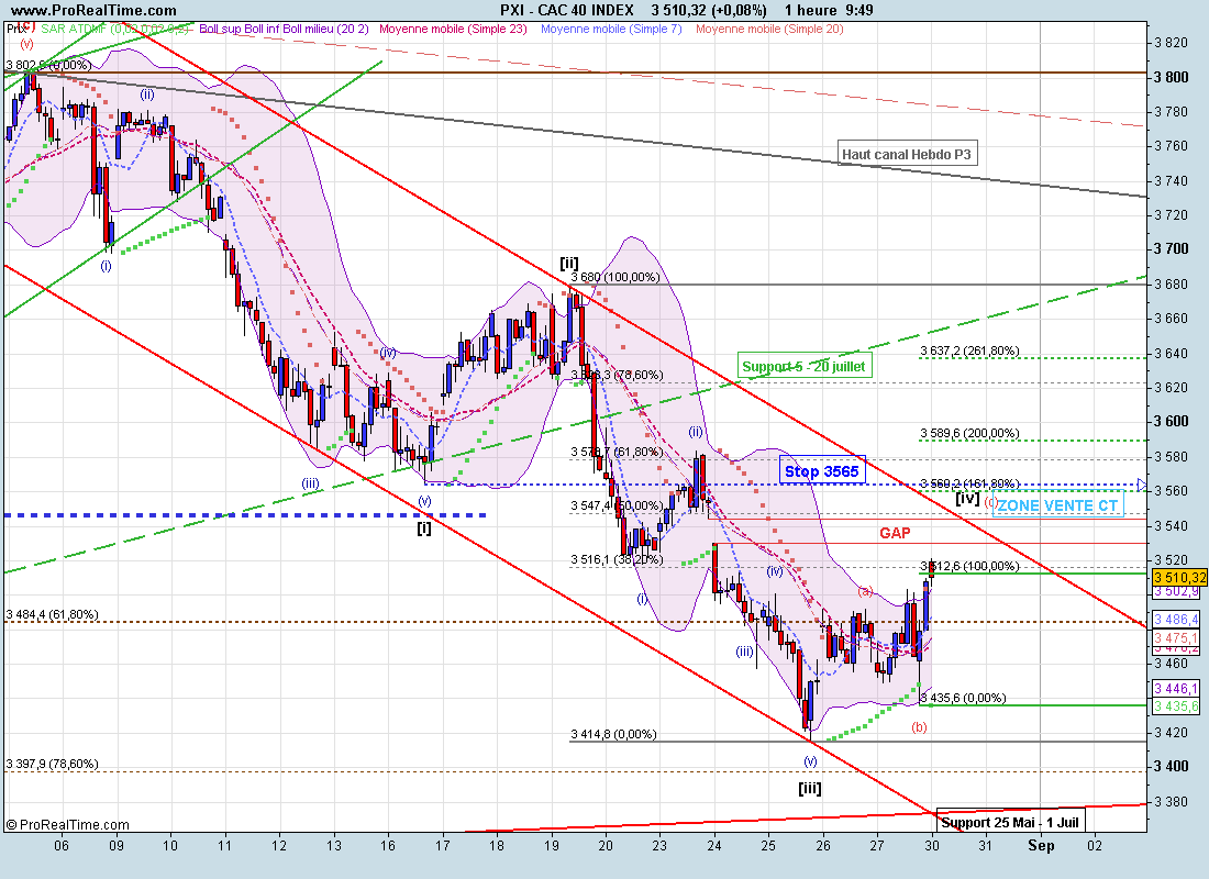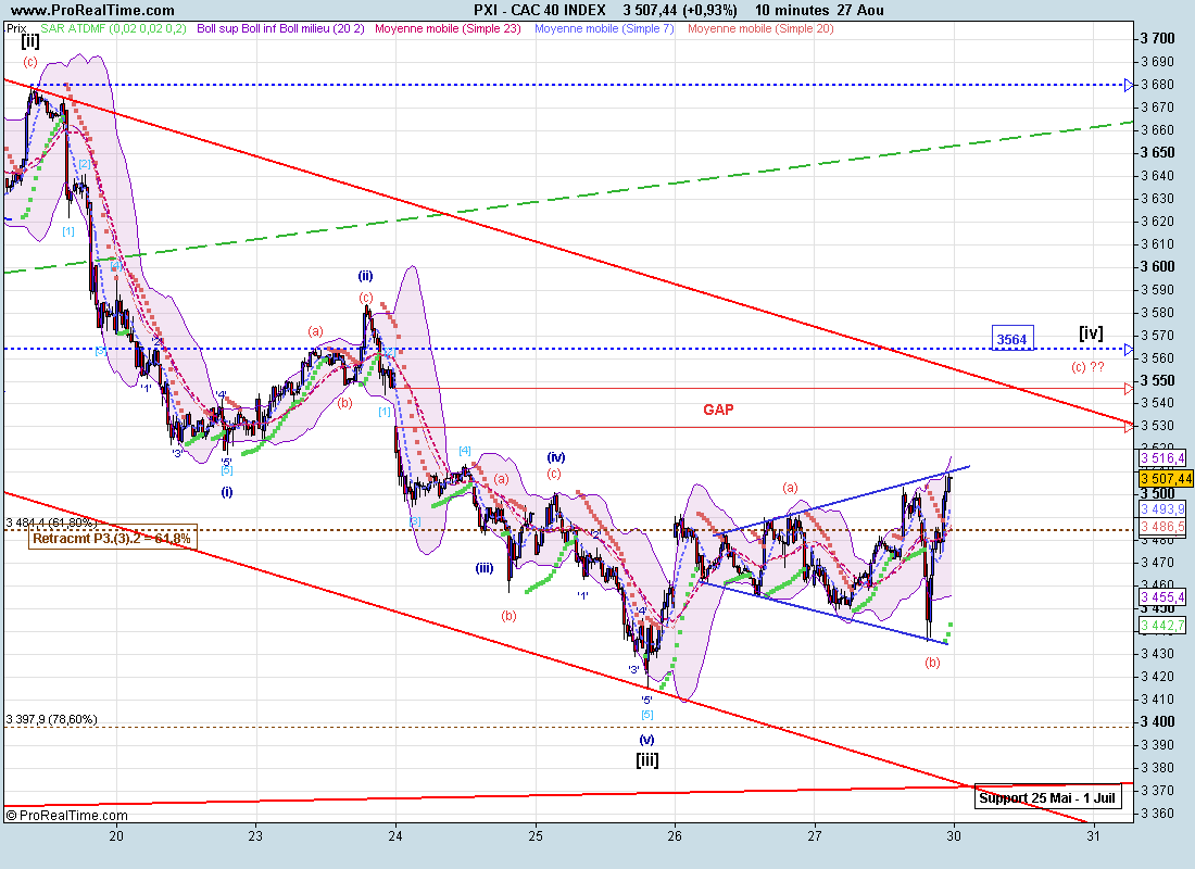 supérieure de cette hausse est à 3564 (le bas de [i]). Ceci permettra au CAC de combler le Gap du