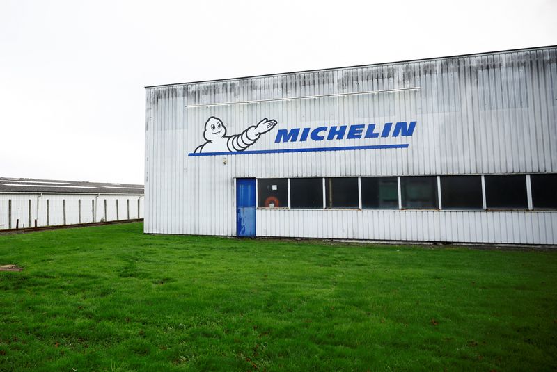 (Reuters) - Le fabricant de pneumatiques Michelin recule jeudi à la Bourse de Paris après avoir partagé avec les analystes des perspectives plutôt pessimistes sur ses volumes de ventes au troisième trimestre.